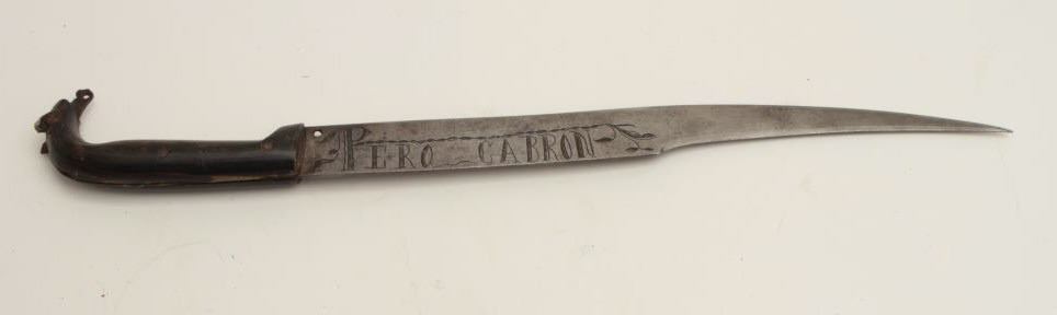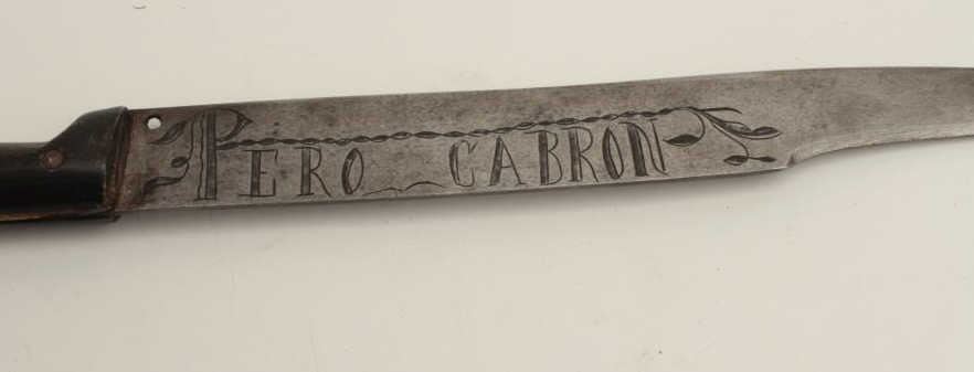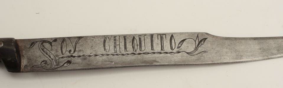 Lot 1370 Mexican fighting knife marked “Pero Cabron, Soy Chiquito”. Est.: $100-$200