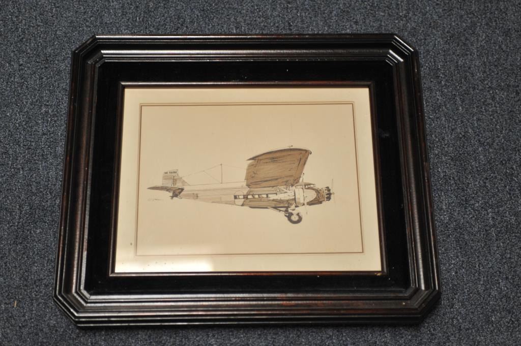 Lot 1396 Lot of 7 misc. aviation-related pieces including 6 framed and matted; one unframed, including a pi