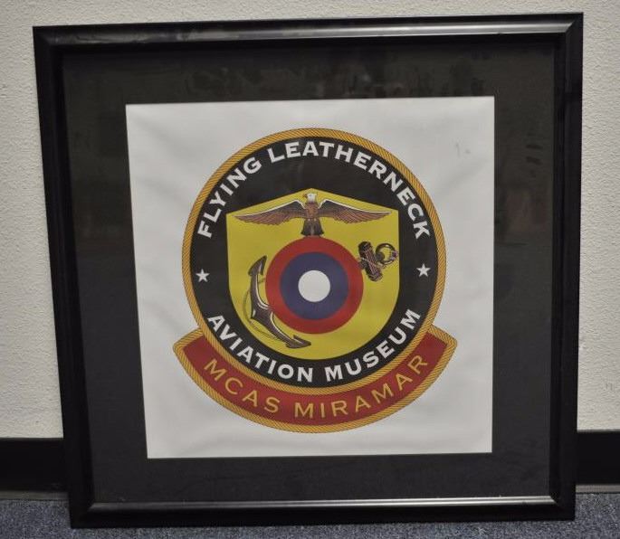 Lot 1398 Lot of 4 framed aviation-related items including a large framed insignia of the Flying Leatherneck
