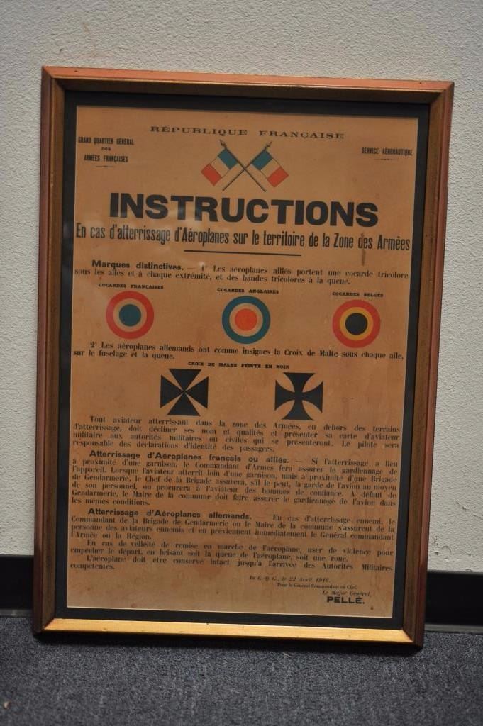 Lot of 4 framed aviation-related items including a large framed insignia of the Flying Leatherneck Aviation Museum at MCAS Miramar; also a large framed set of instructions in French for determining theCountry from which a plane’s insignia is representing (WW I era); a group photo of the Cadet Corps-March Field-1928 and a U.S. Naval Aviation color recruiting poster. From the Bill Bettis Nieuport 17 Restaurantcollection. Est.: $100-$200.