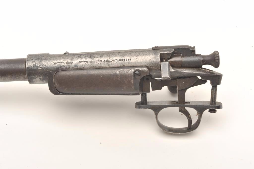 U.S. Springfield Krag Model 1898 barreled action only, .30-40 Krag caliber, 22” barrel, S/N 337888, in overall fair+ condition with an overall dark patina to metal surfaces, fair + bore, crisp action and markings.(C&R). Est.: $100-$200.