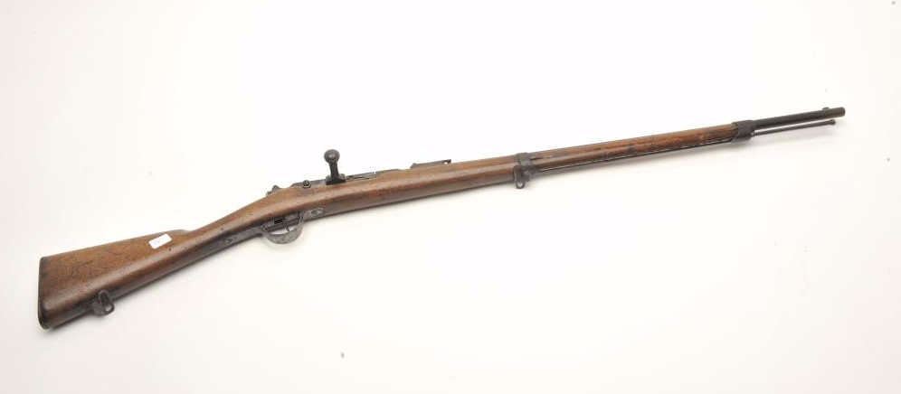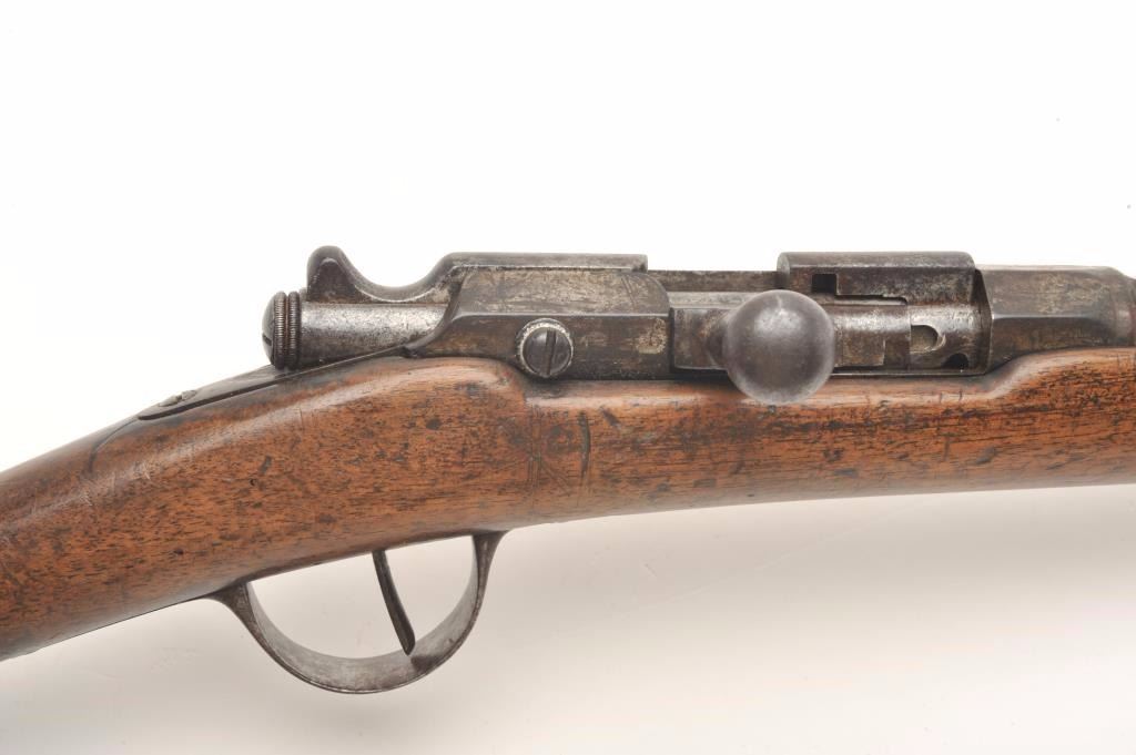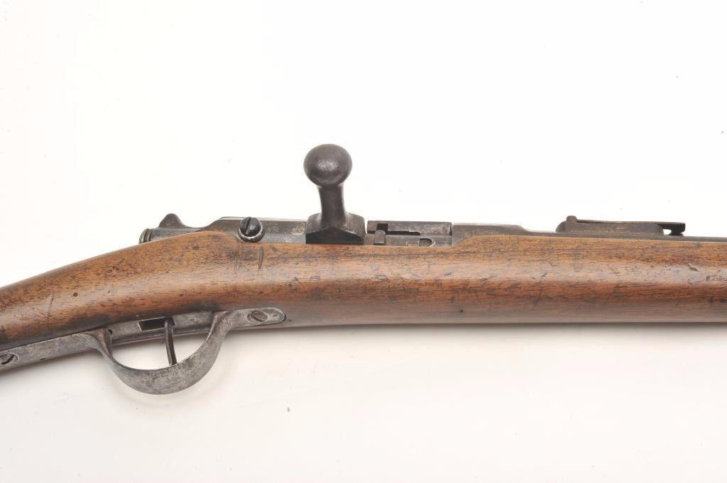 French 1870’s era single shot bolt action cadet rifle in approximately 10mm, S/N 1R427 with small proofs but no date or arsenal name. Fair to good overall. (Antique) Est.: $100-$200