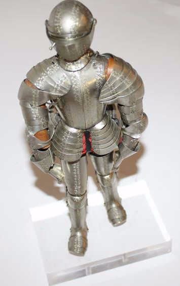 Lot 1434 Nicely made miniature suit of armor; articulated metal and decorated; no fingers; ca. 1900-1940, o