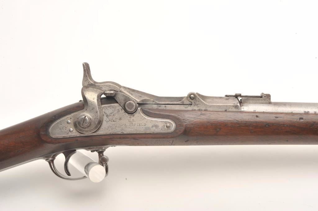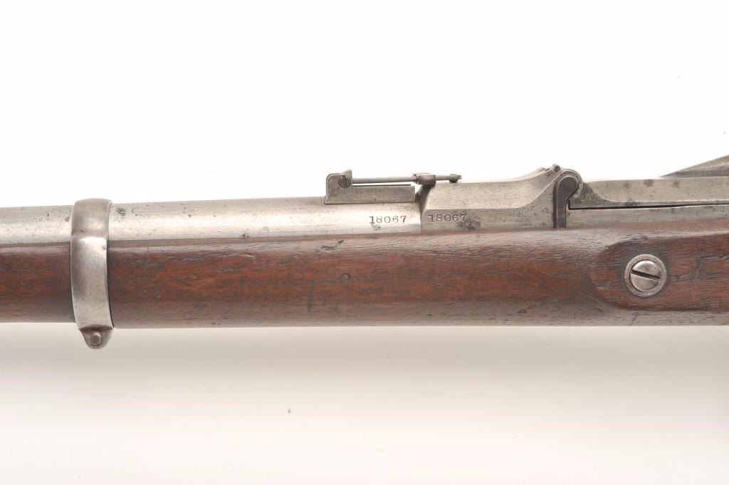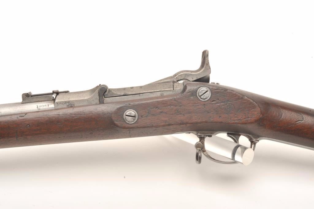 U.S. Springfield Model 1868 (made in 1869), .50-70 caliber, 32.5” barrel, wood stock, S/N 18067, in overall good condition with good bore, crisp action, good markings and good stock displaying ESA inspector’s cartouche;an all correct Model 1868. (Antique). Est.: $400-$800.
