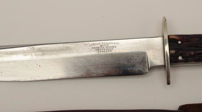 Lot 1444 George Butler, trinity works, Sheffield marked “Key brand: spear point Bowie knife with rare origi
