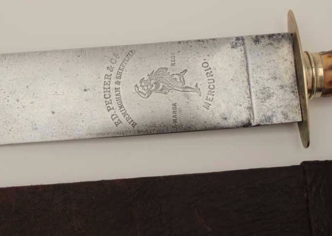 Lot 1447 Large spear point Bowie marked “E.D. Pecher & CA, Birmingham” and “Sheffield, Mercury” and “Mecuri