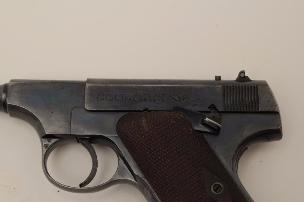 Lot 1448 Colt Pre-Woodsman .22 caliber semi-auto pistol with a 6 ½” barrel, S/N 19793 with early slim Jim w