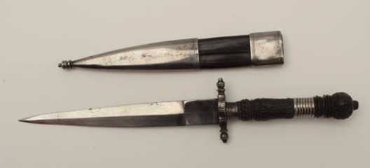 Lot 1454 Finely made 18th to 19th century European dagger with scabbard. Measures 11” overall with a 6 ¾” b