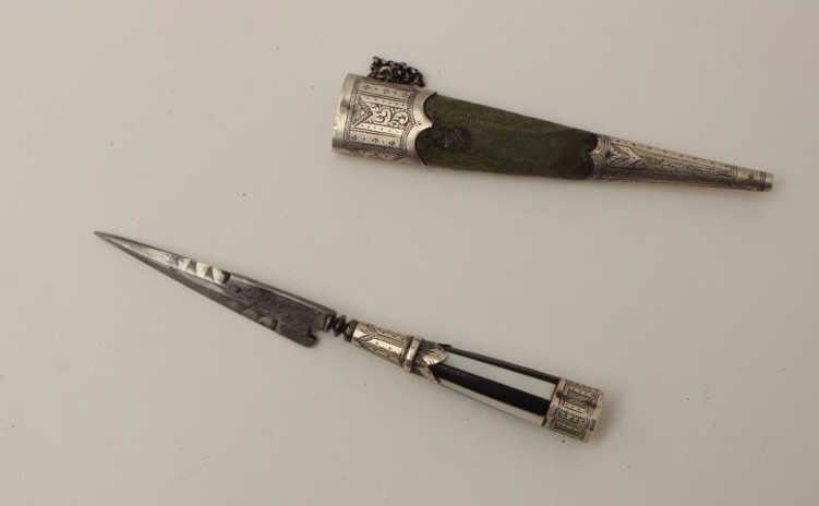 Lot 1455 19th century vendetta dagger of miniature size etched “Vendetta, Morta” (Revenge and death). measu