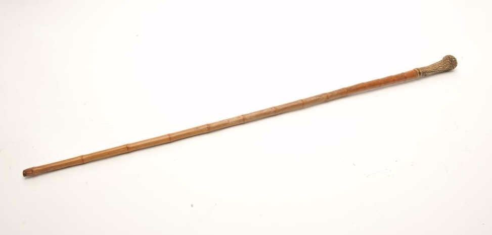 Nineteenth Century cane sword with stag grip, approximately 35.5” overall, missing bottom metal tip. NOTE: CANNOT BE DELIVERED TO CALIFORNIANS; OUT-OF-STATE BUYERS ONLY! Est.: $250-$500.