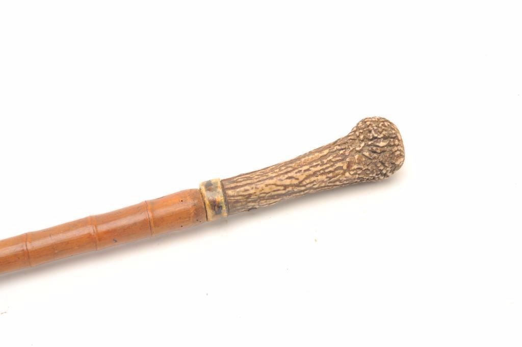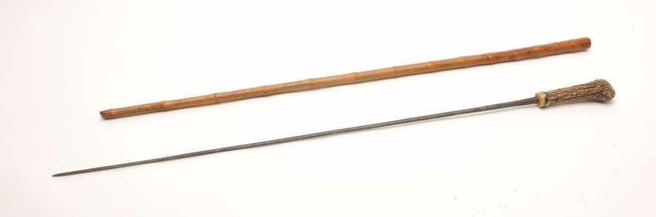 Lot 1456 Nineteenth Century cane sword with stag grip, approximately 35.5” overall, missing bottom metal ti