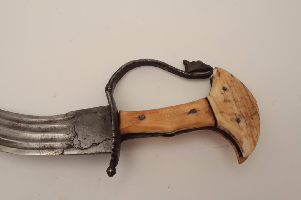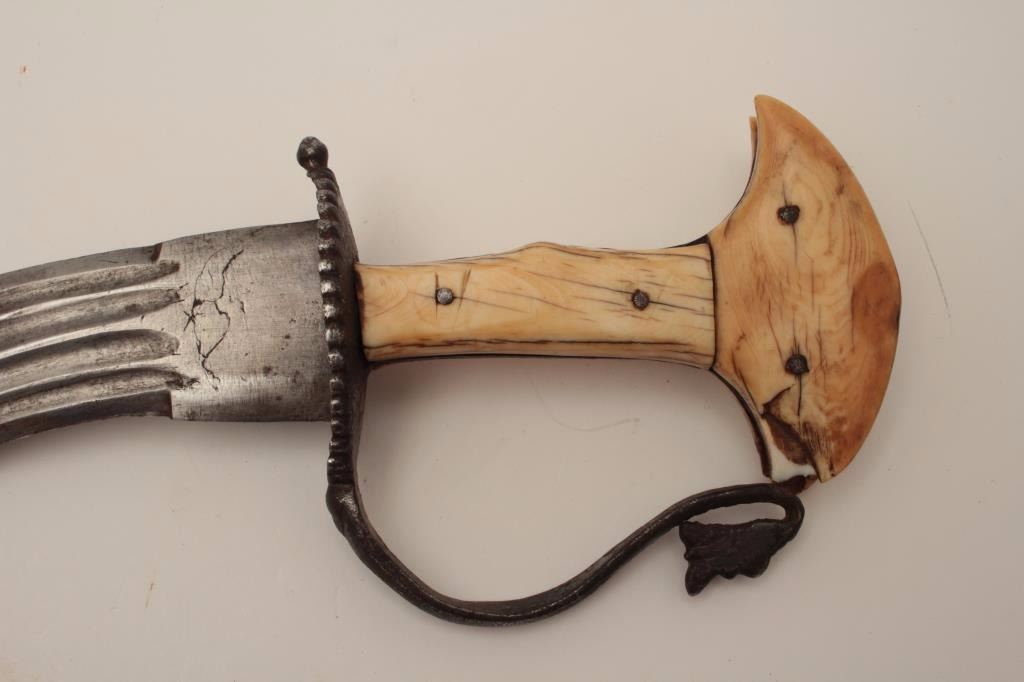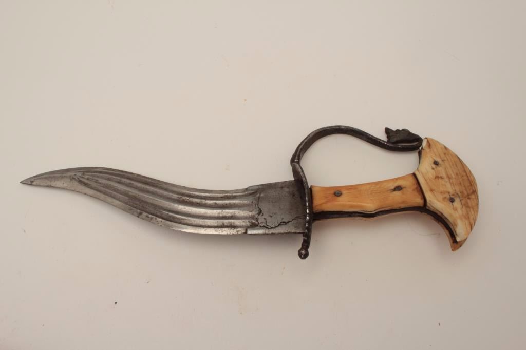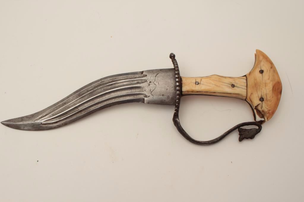 Lot 1462 Early Indian khanjar dagger circa 18th to 19th century with original ivory grip, forged steel guar
