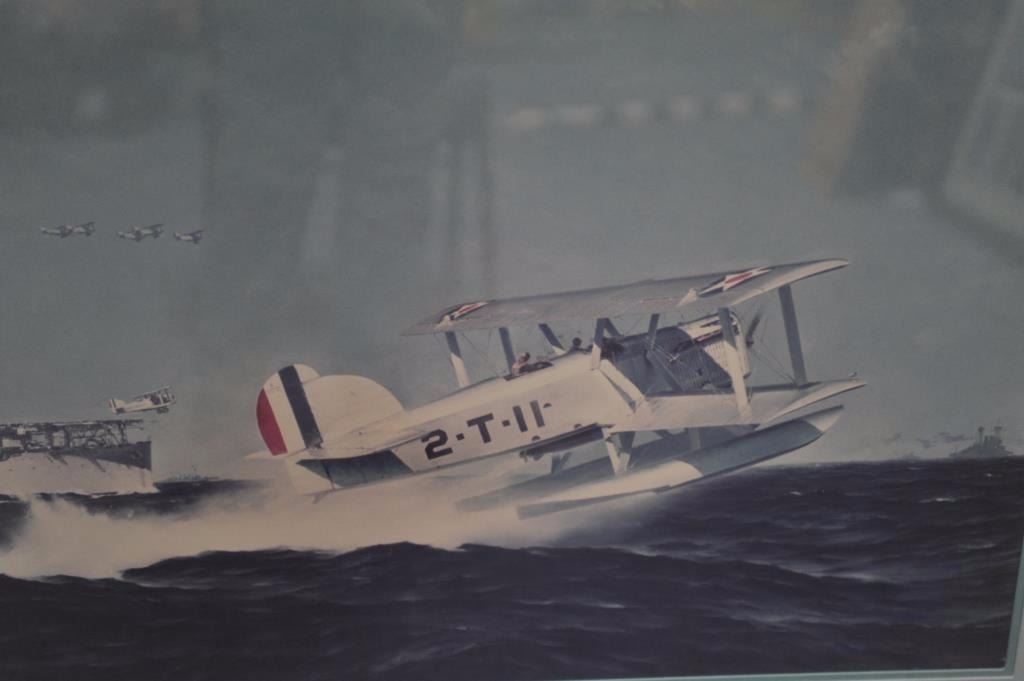 Lot 1465 Beautifully framed and matted print of a World War I American seaplane in action with an aircraft