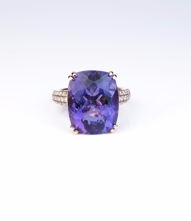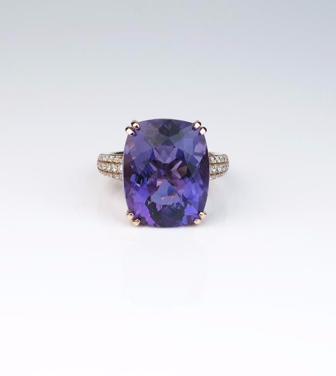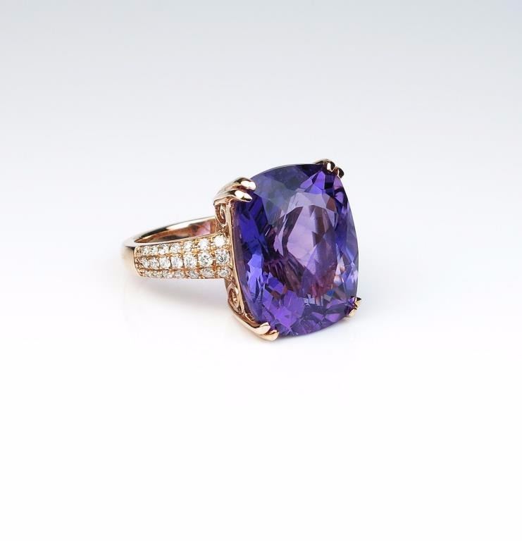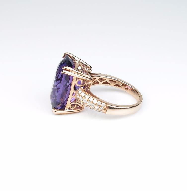 Lot 1482 Amazing ladies Rose gold ring featuring a fine Amethyst weighing approx. 18.00-20.00 carats and mi