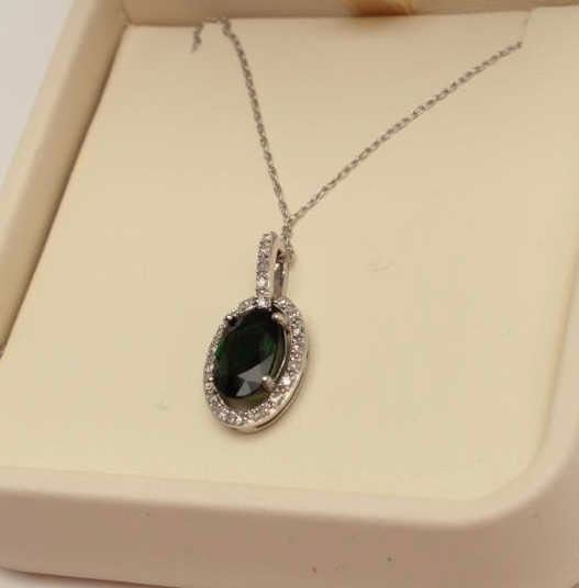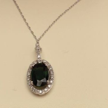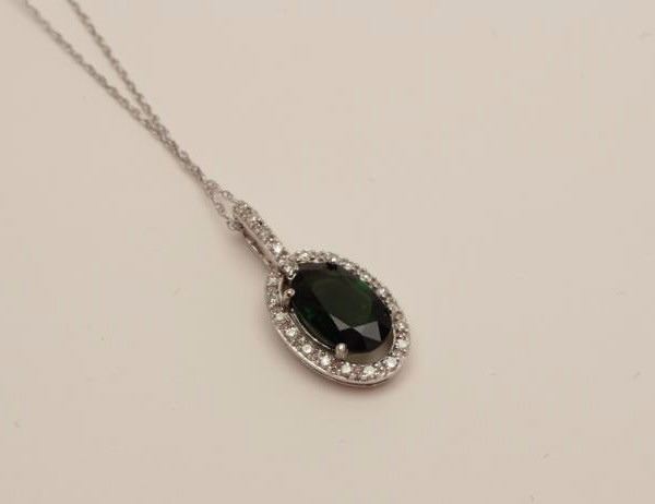 Lot 1485 Majestic 10 karat white gold ladies pendant set with a center oval green Tsavorite weighing approx