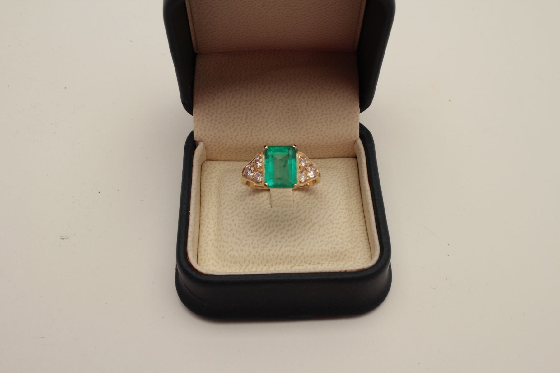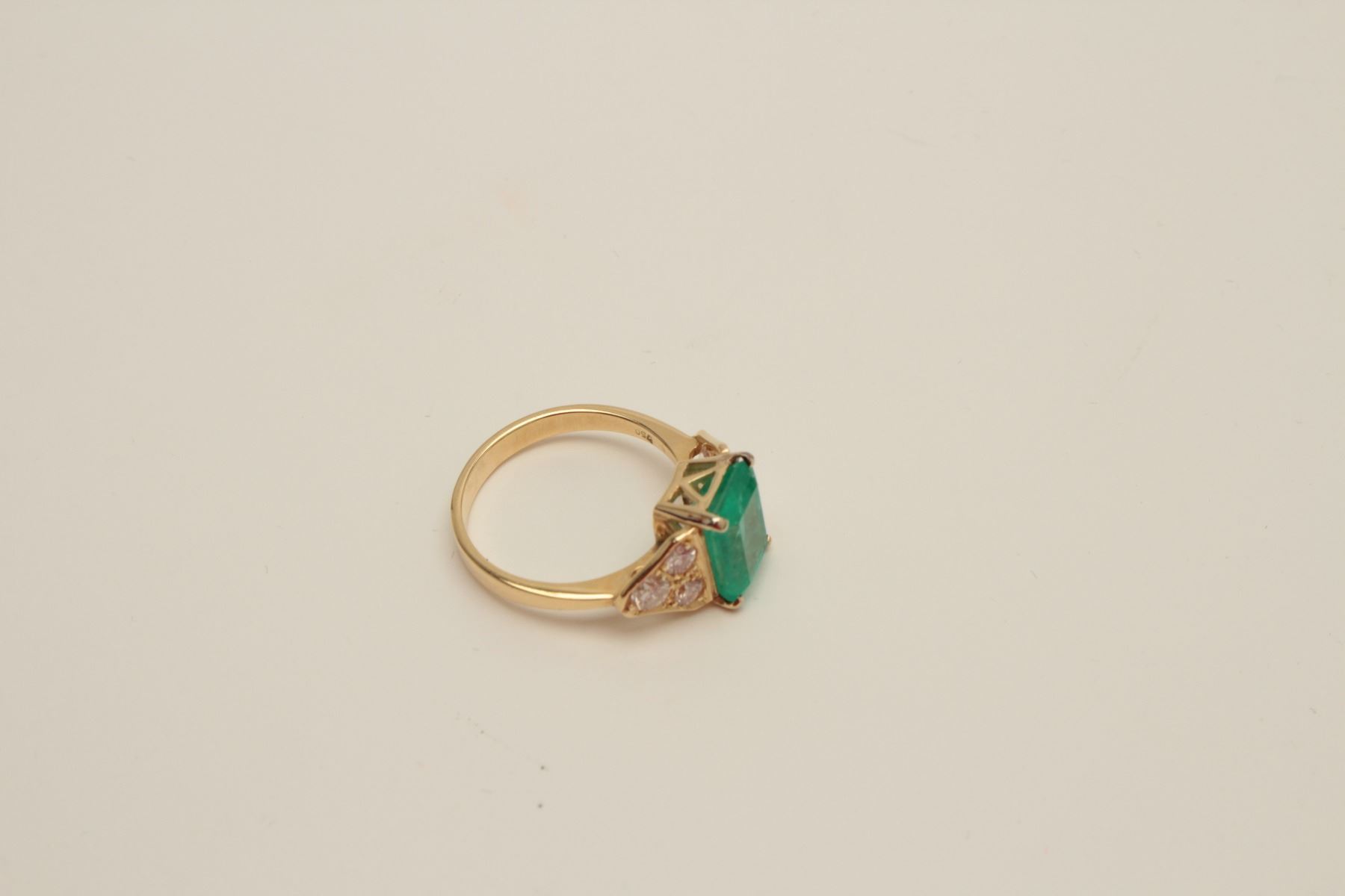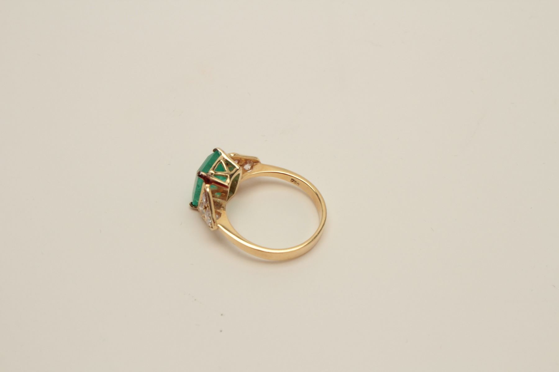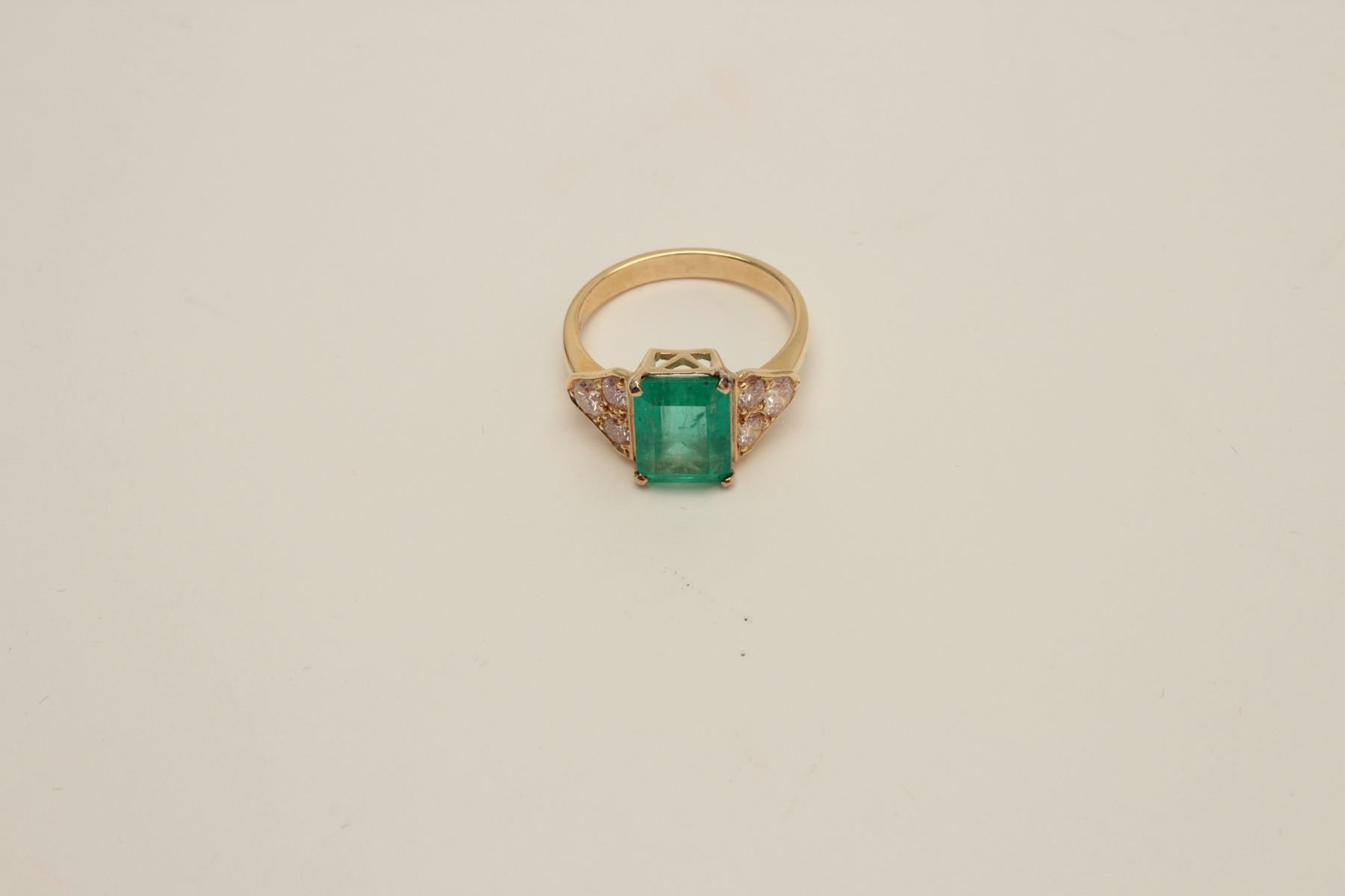 Lot 1486 Stunning 18 karat yellow gold ladies Emerald ring featuring a 3.00 carat Emerald with 6 side diamo