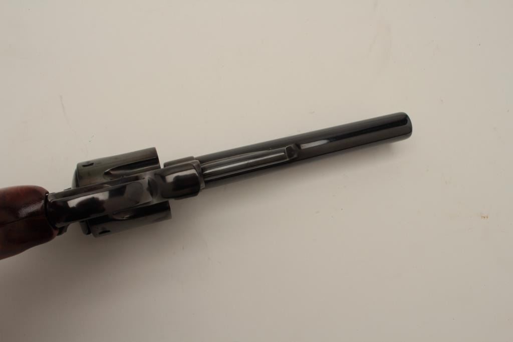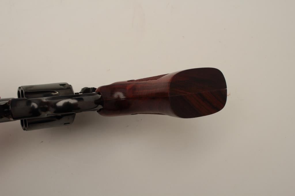 Smith & Wesson Model 29-2 Double Action Revolver in .44 Mag. with pinned barrel and recessed cylinder, 6 ½” barrel, checkered Goncalo Alves target grips, shipped Dec. 7, 1977 to Albrecht Kind G.M.B.H., Hunstig,Germany. Copy of factory letter included. This revolver remains in excellent original condition with 96%-98% original blue and case hardening. Slight index line. Very minor use and storage. The grips are excellent. In S&W box with cleaning rod, screwdriver and two rod tips. The box is very good to almost fine showing slight wear at the contact points in the bottom of the case. (Modern/PPT) Est.: $900-$1800
