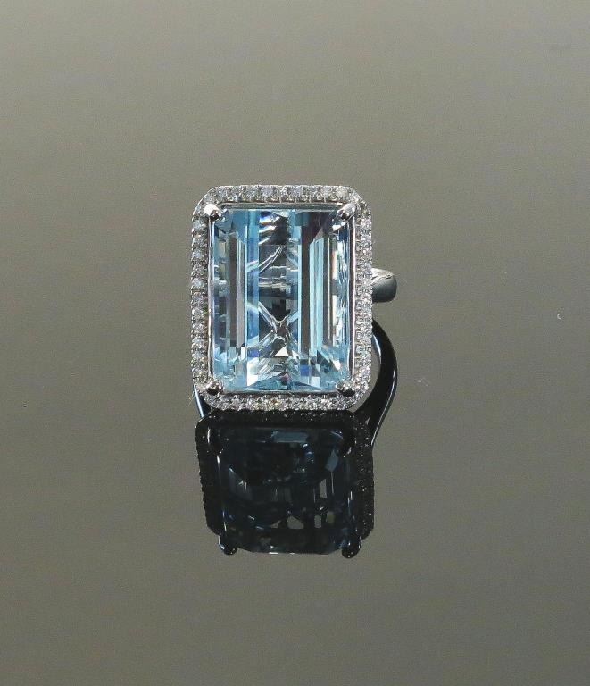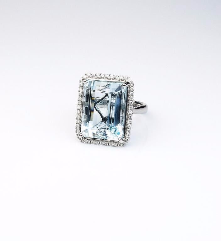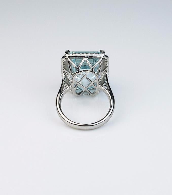 Lot 1522 Stunning Aquamarine ring featuring a Fine Aquamarine weighing approx. 20.00 carats and surrounded