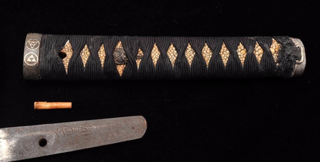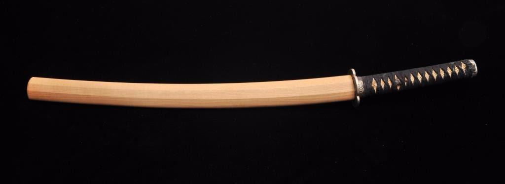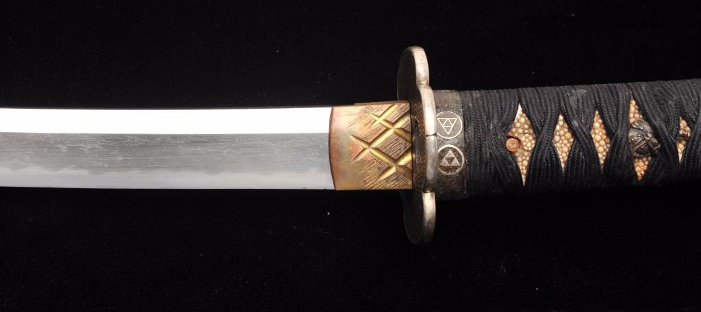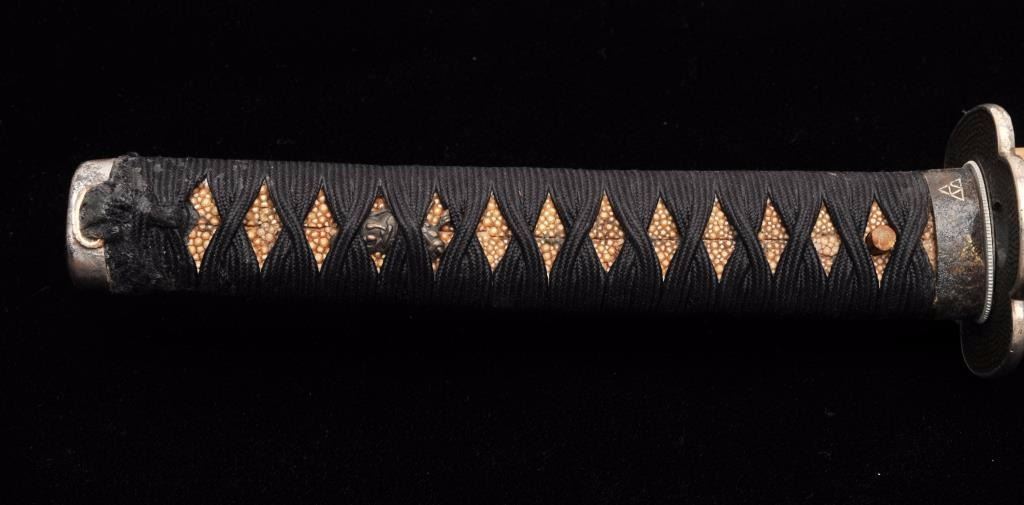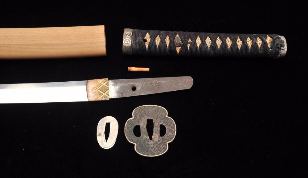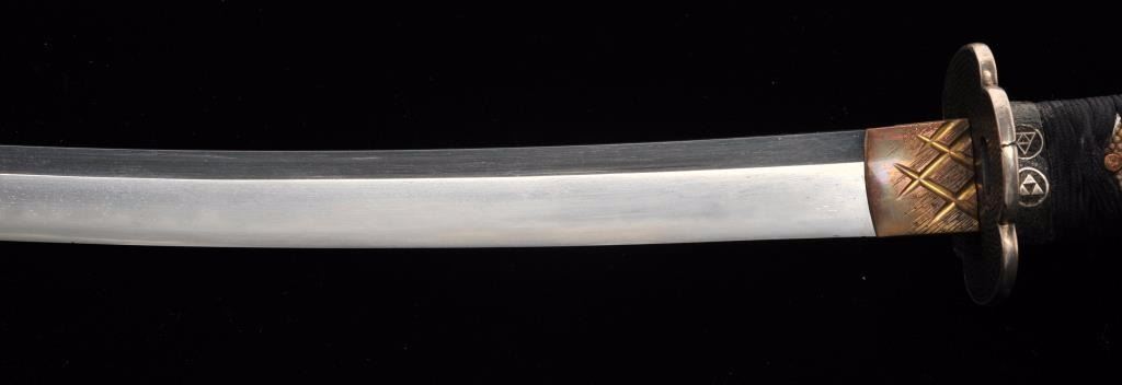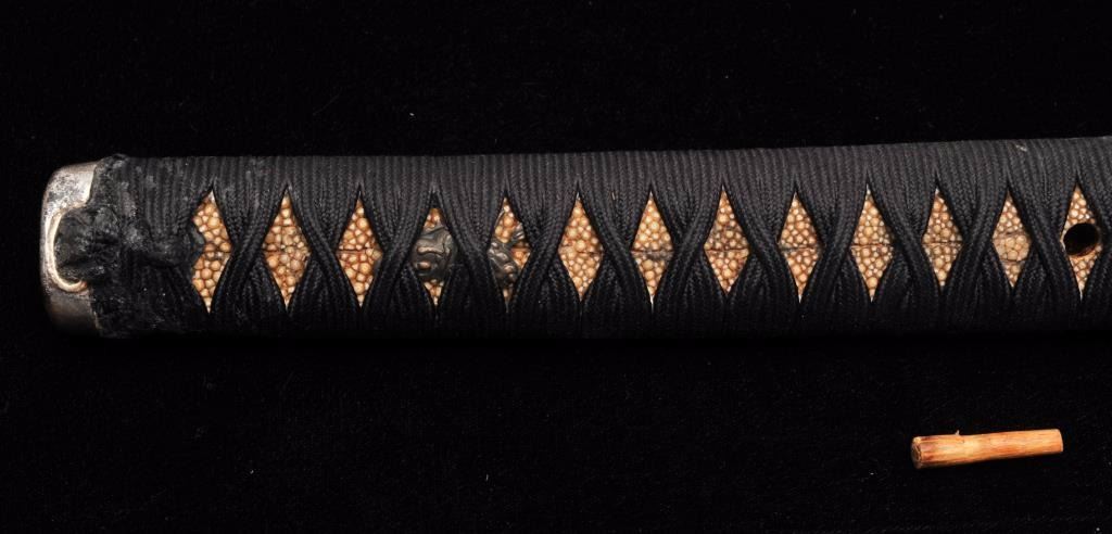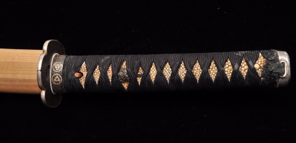Lot 1553 Koto period long wakasashi with a 20” blade signed with traditional mountings except blade resting