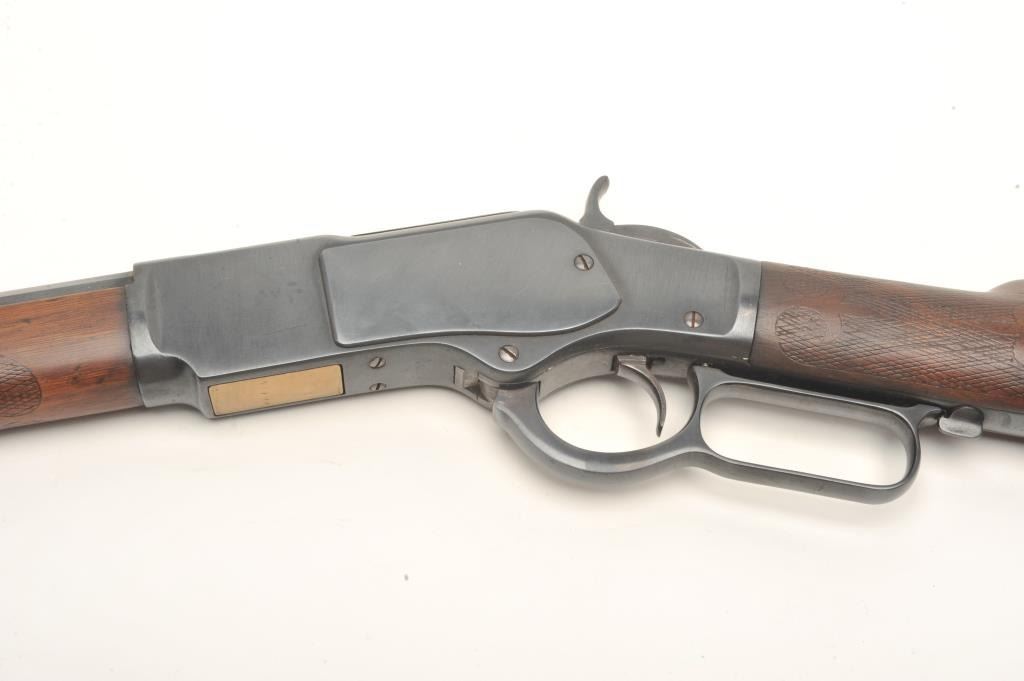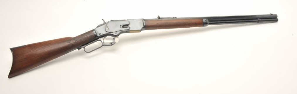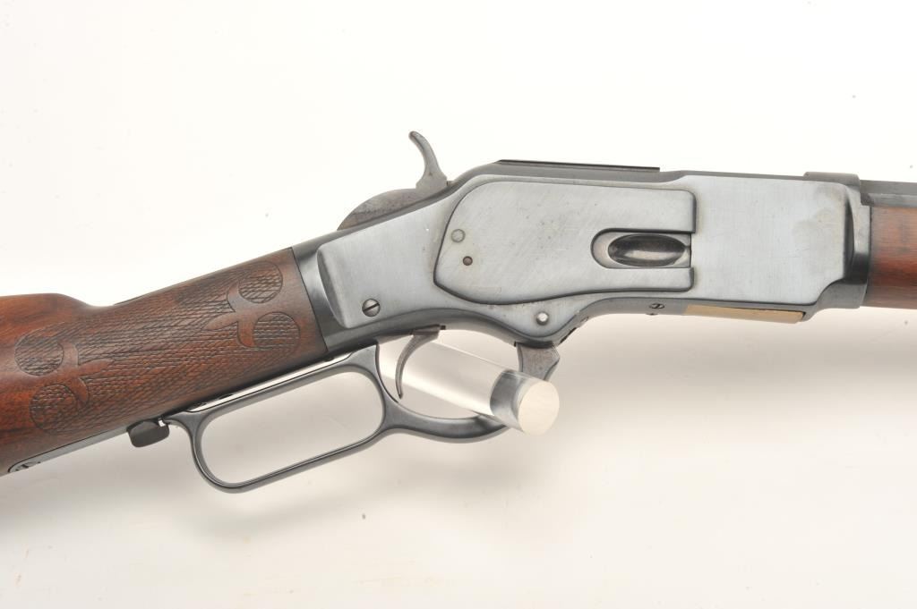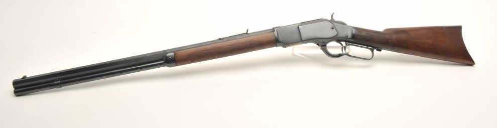 Lot 1566 Winchester Model 1873 lever action rifle, .44 W.C.F. caliber, 24” octagon barrel, re-blued finish,