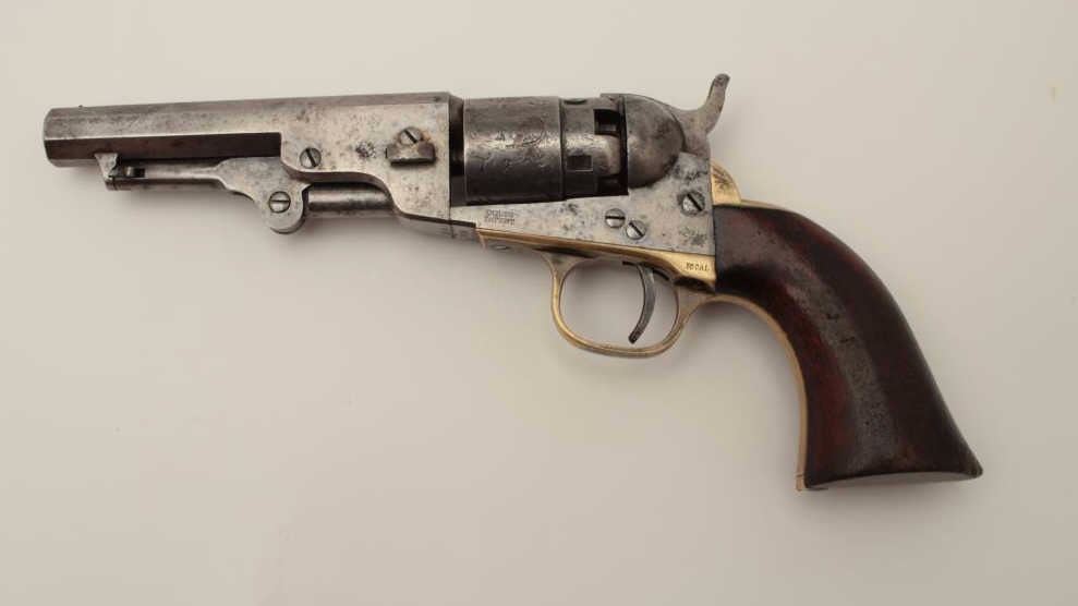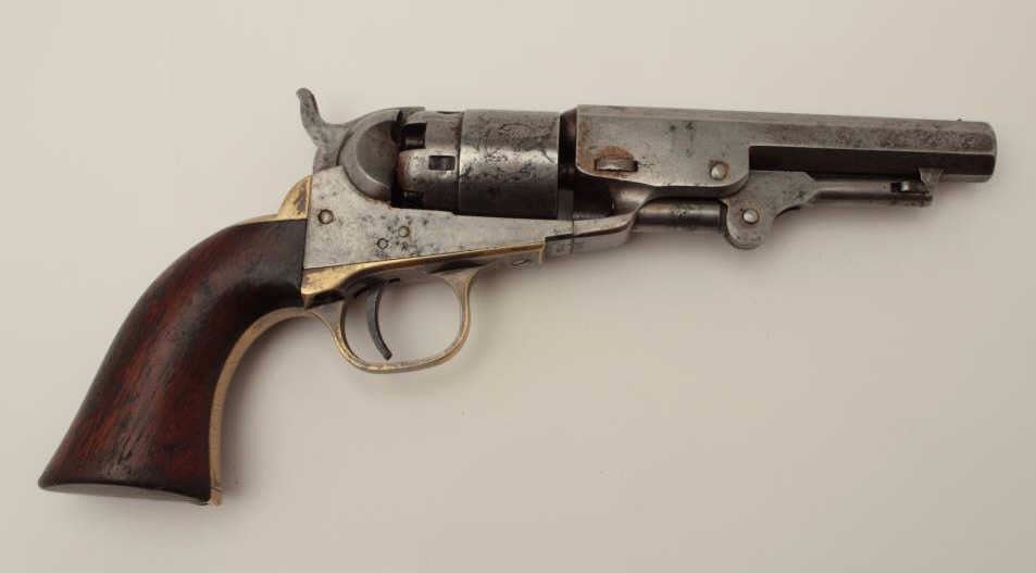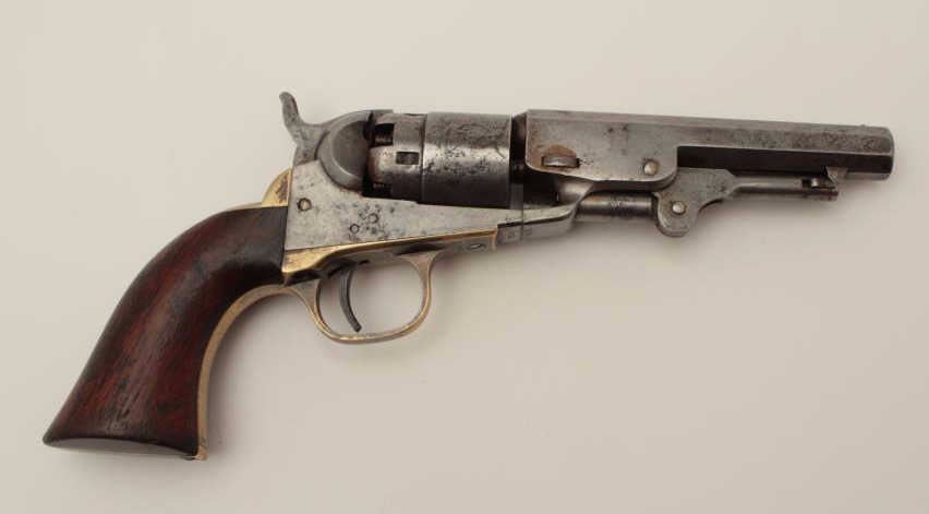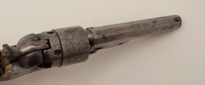 Lot 1582 Colt Pocket Model of Navy caliber with a 4 ½” barrel in .36 caliber percussion, S/N 19814 showing