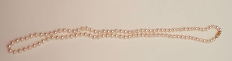 Lot 1597 Natural “Gem” quality pink rose or “Angel skin” color matched cultured pearls of approximately 8-8
