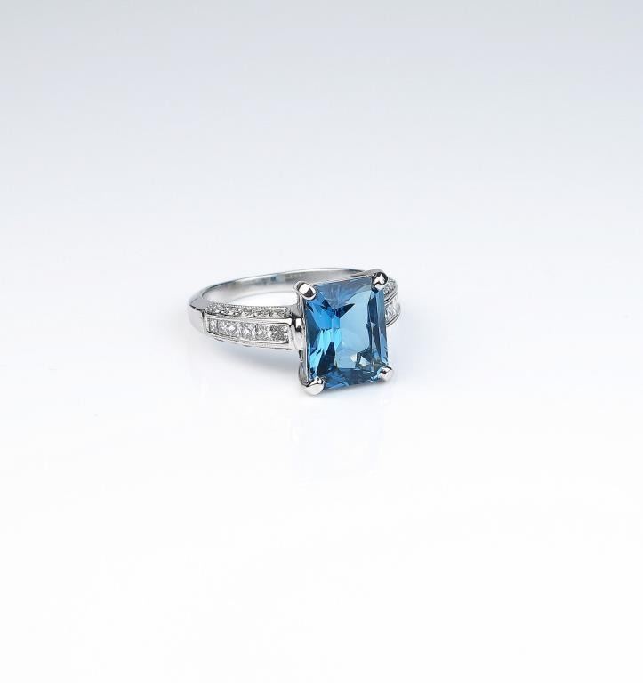 Lot 1600 Gorgeous ladies ring set with a fine London blue Topaz weighing approx. 3.50- 4.00 carats and set