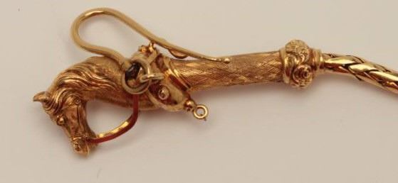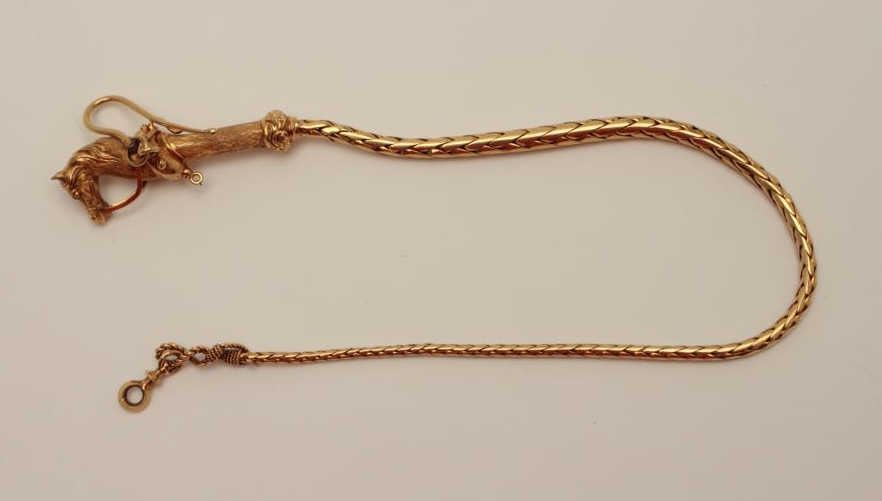 Lot 1617 Finely handmade and custom antique pocket watch chain and horse head fob in 14k rose gold (unmarke