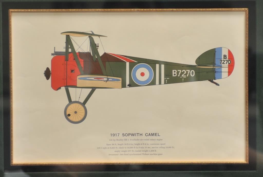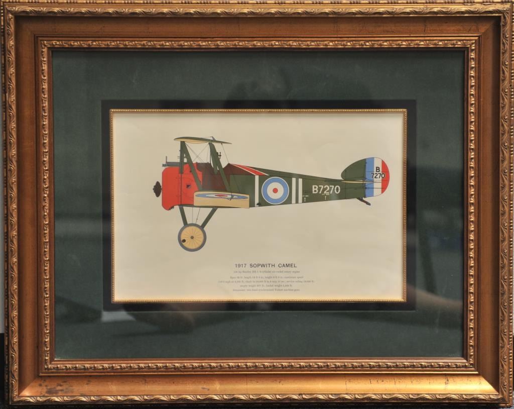 Lot 1625 Lot of 2 beautifully framed and matted large color prints, one of a 1917 Sopwith Camel bi-plane ap