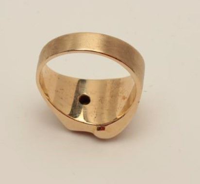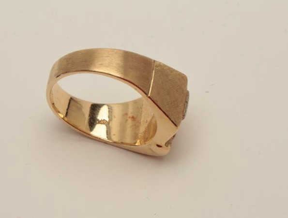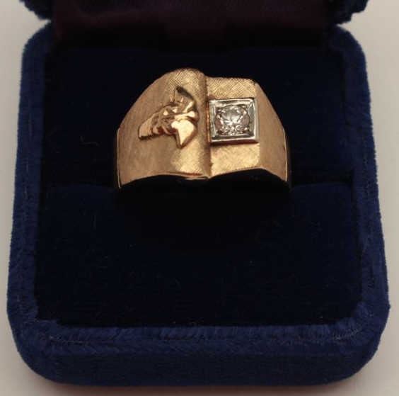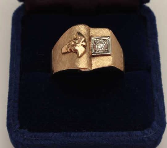 Lot 1647 Art retro (1940s) men’s ring in 14k showing medical symbol. Set with small diamond. Gift to medica