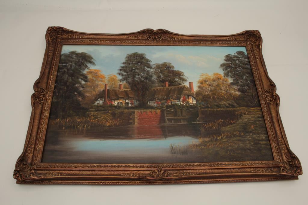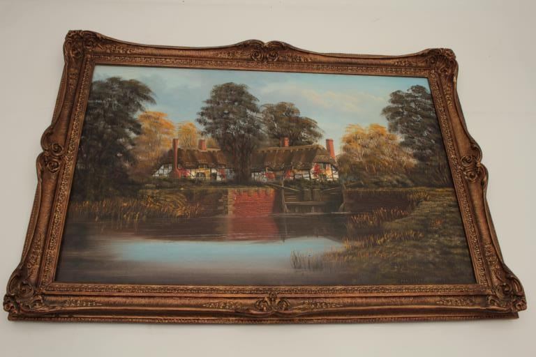 Lot 1677 Original oil painting signed Malcom Gearing measuring 24” x 36” and titled “River Avon, by Isle Lo