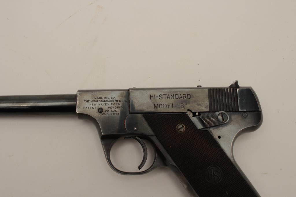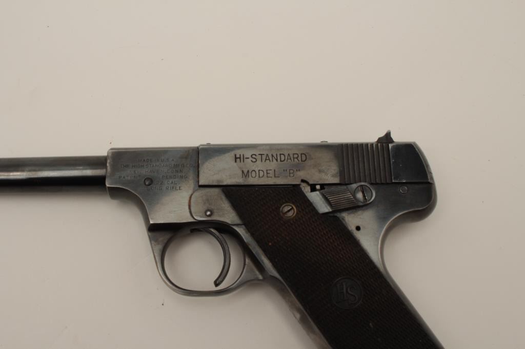 Lot 1687 Hi Standard Model B .22 L.R. caliber semi-auto pistol, S/N 59276. A fairly scarce and collectible