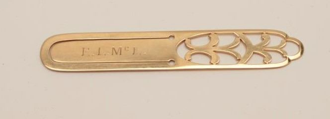 Lot 1697 Antique gold page marker inscribed with block initials “E.L.M.C.L.” 14k markers marks and numbered