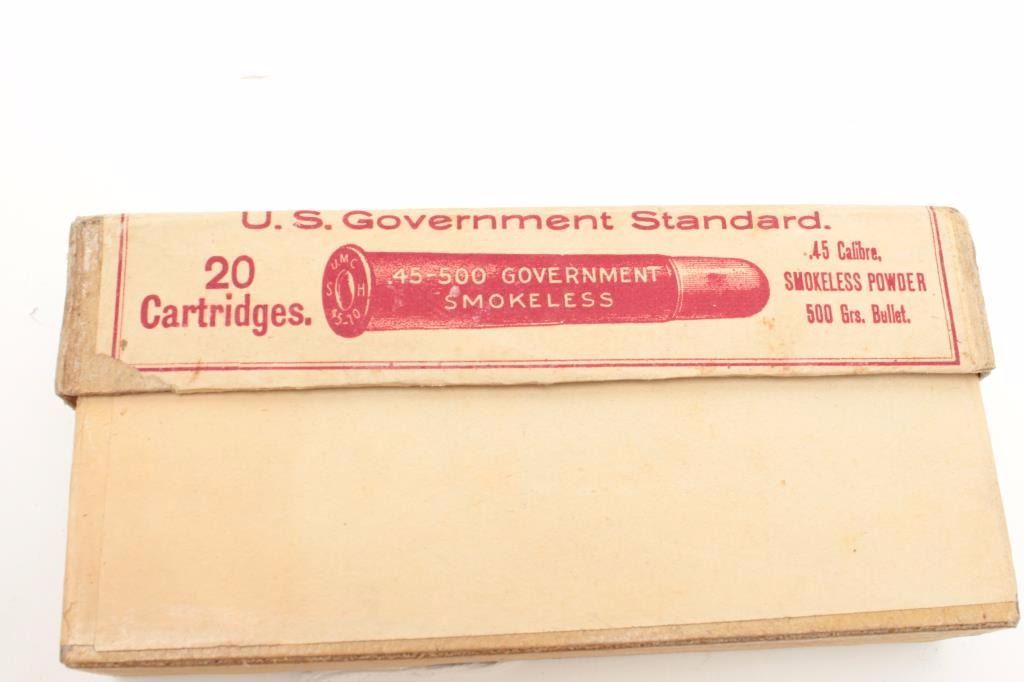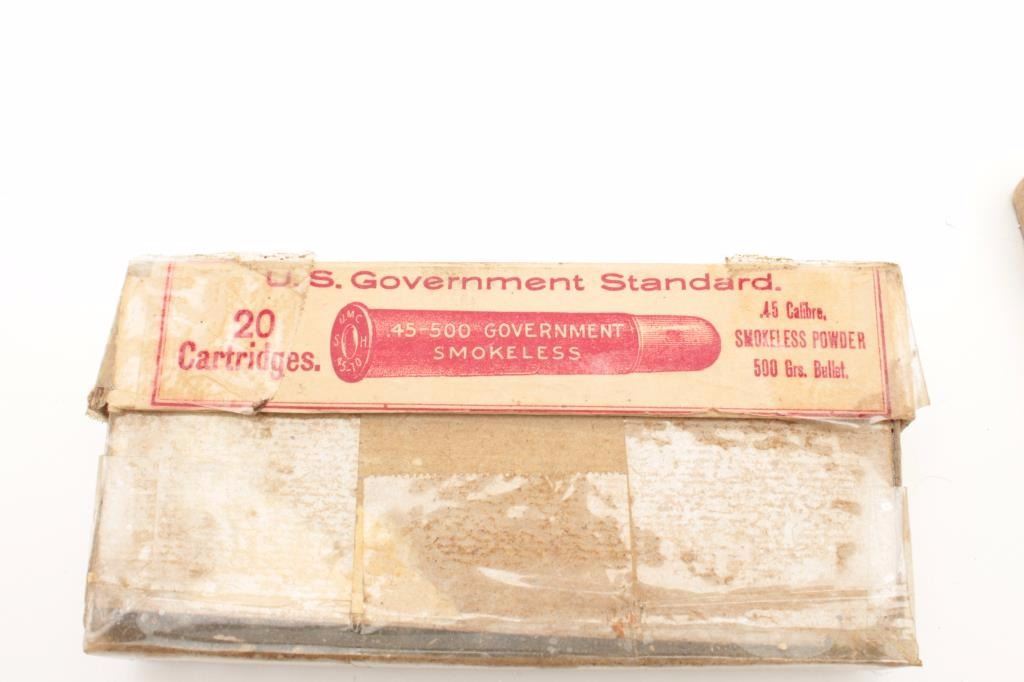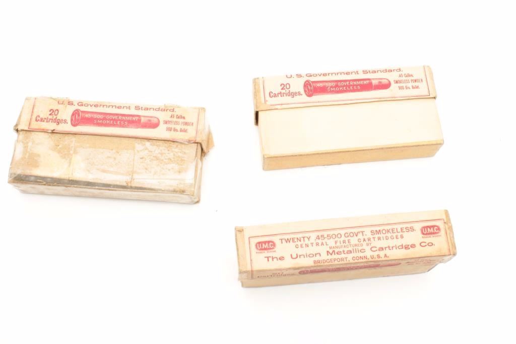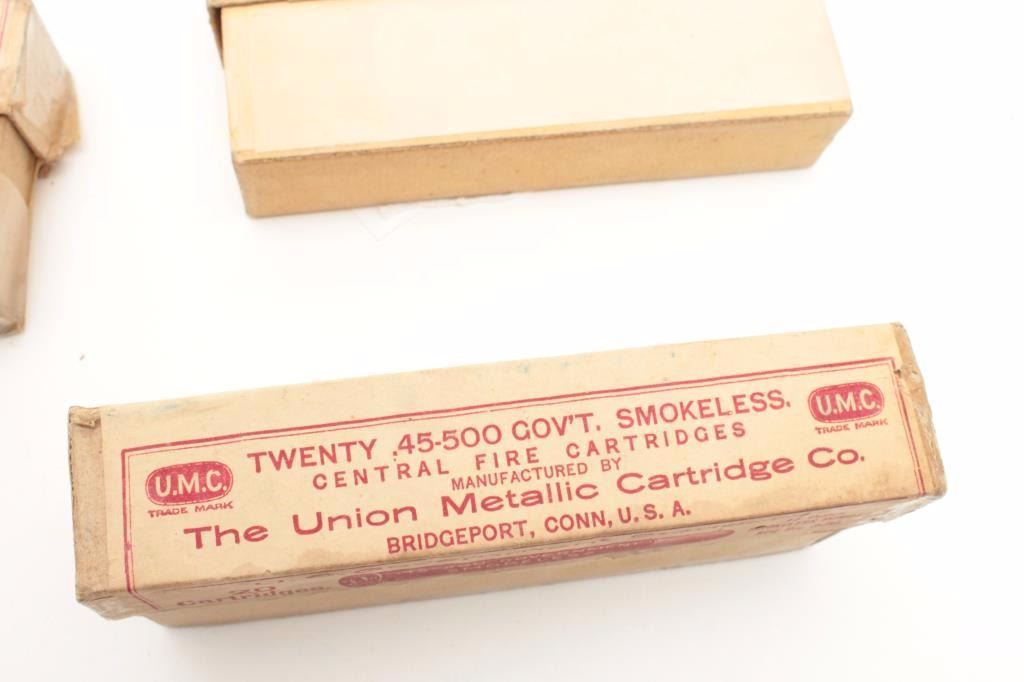 Three boxes of collector UMC .45-500 Gov’t caliber ammunition. Est.: $125-$175.