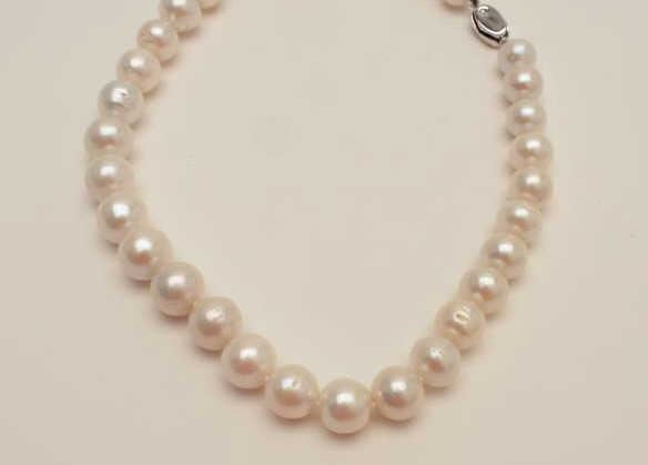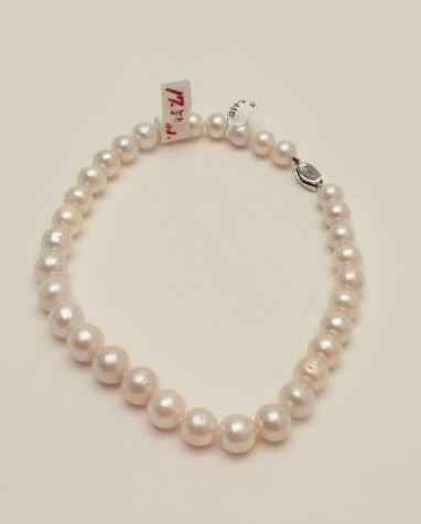 One strand of fine pearls measuring from 14mm – 11mm in diameter and is 17.5inches long. Est:$400-500
