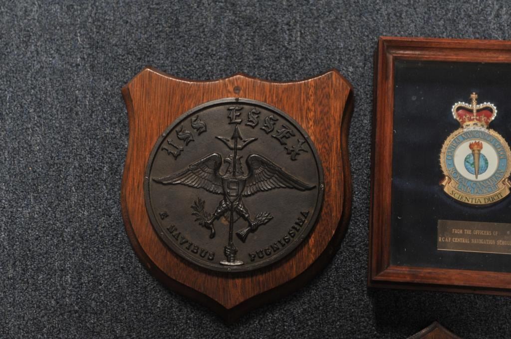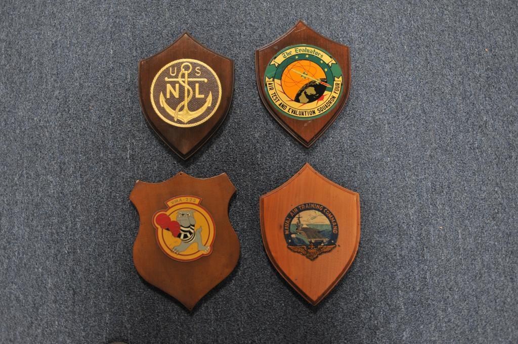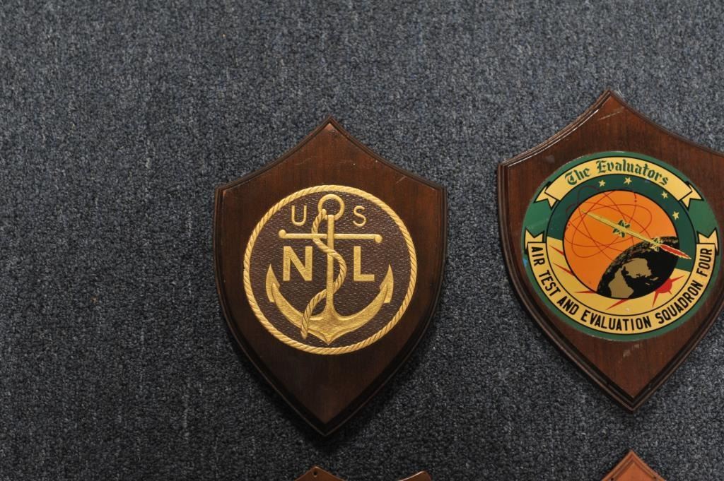 Lot of 11 misc. aviation wall plaques including VMA 223 Fighting Bulldog; Capt. Bill Sullivan, Commander Light Attack Wing Pacific (05 JUL 1976-01 AUG 1979); Air Test And Evaluation Squadron Four/The Evaluators;VMFA 531; U.S.S. Essex and more! From the Bill Bettis Nieuport 17 Restaurant collection. Est.: $150-$250.