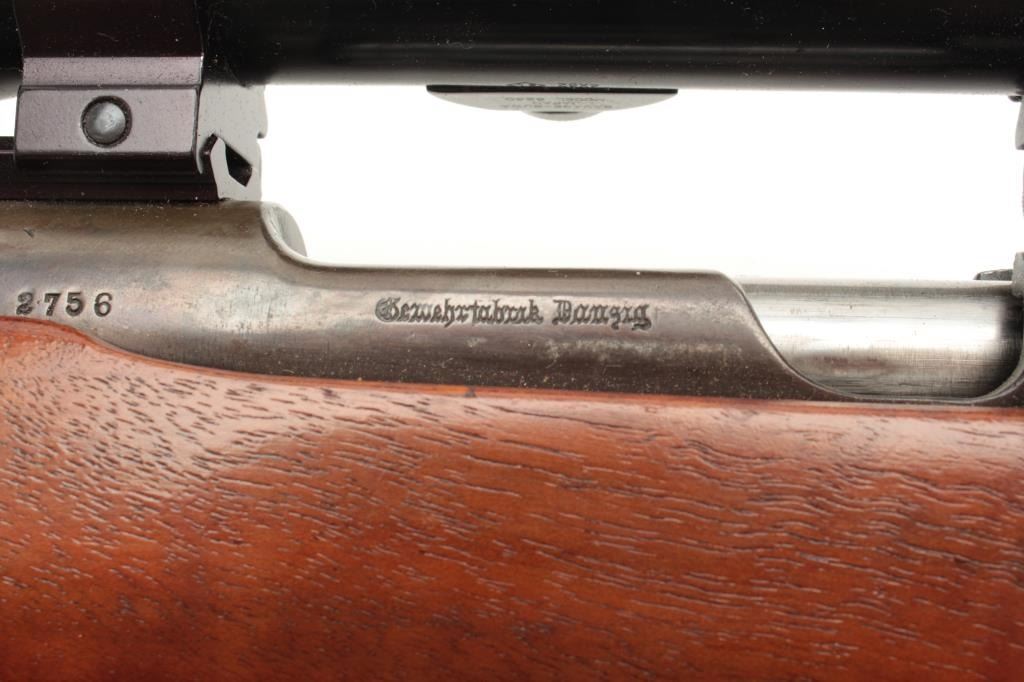 Lot 1743 Sporterized Mauser rifle in 8mm caliber with Danzig arsenal marks on the action, S/N 2756 with dou