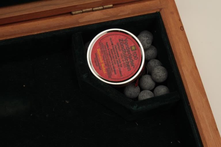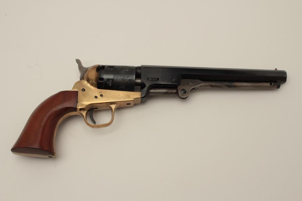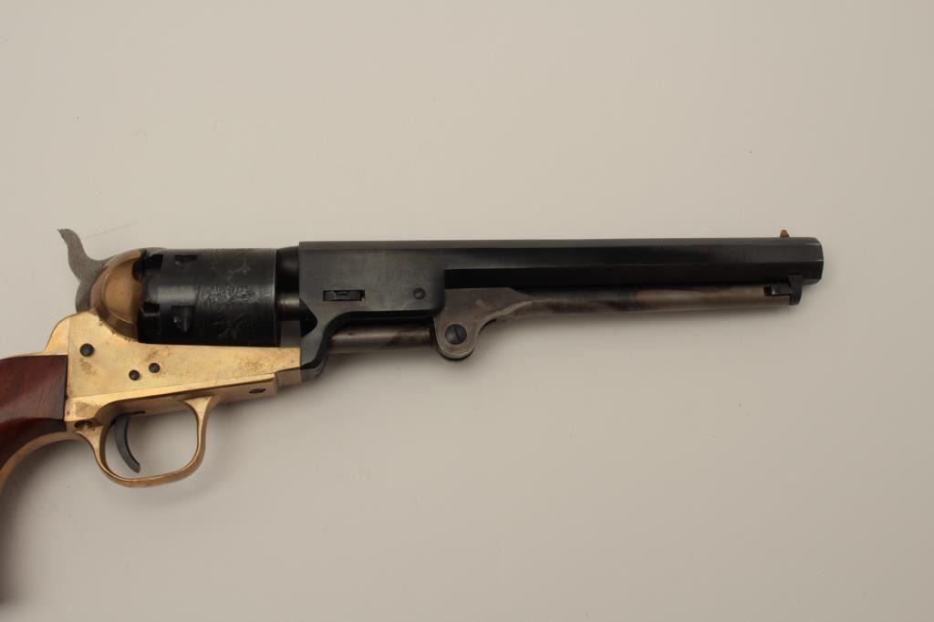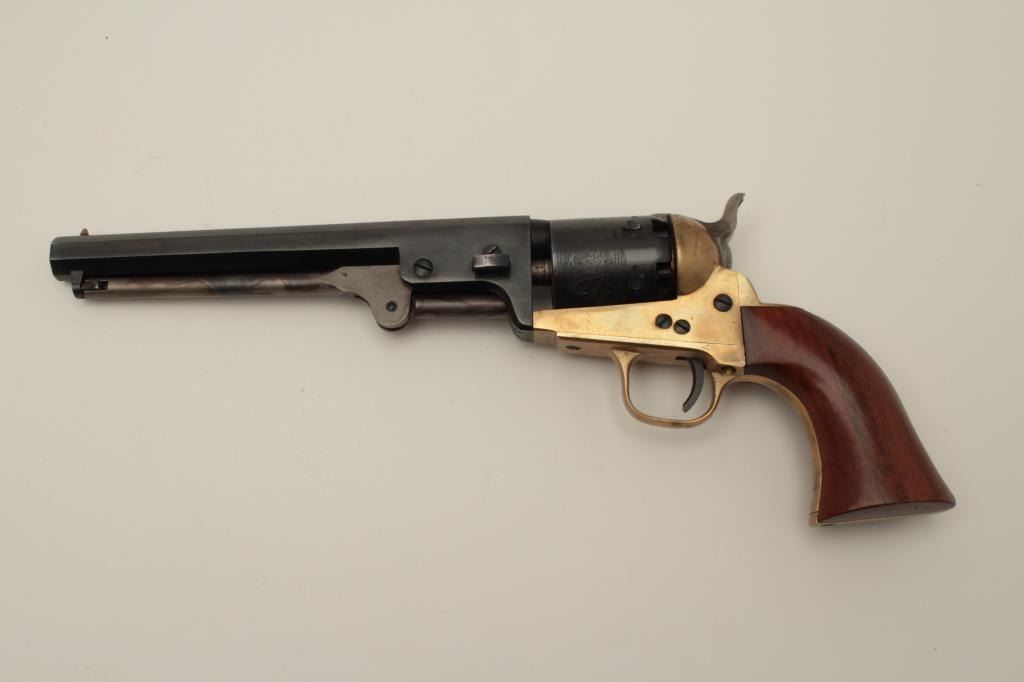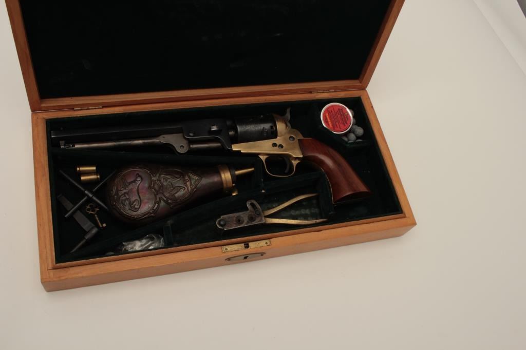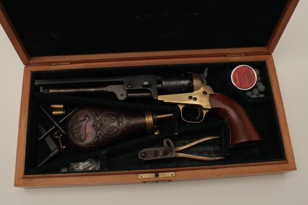 Lot 1748 ASM Cased reproduction 1851 Navy percussion revolver, .36 caliber, serial #73718. The pistol is i
