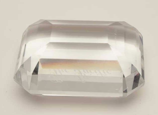 Lot 1766 One Tiffany’s facetted emerald cut paper weight named “The Pacific” Est:$100-150