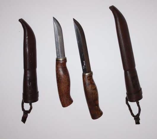 Lot 1781 Lot of 2 Finnish side knives in traditional North European style with ¾ scabbards 1 marked and bot