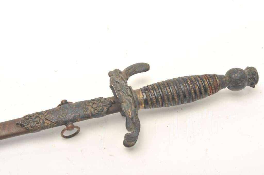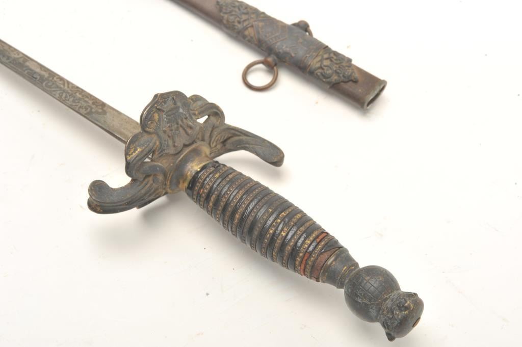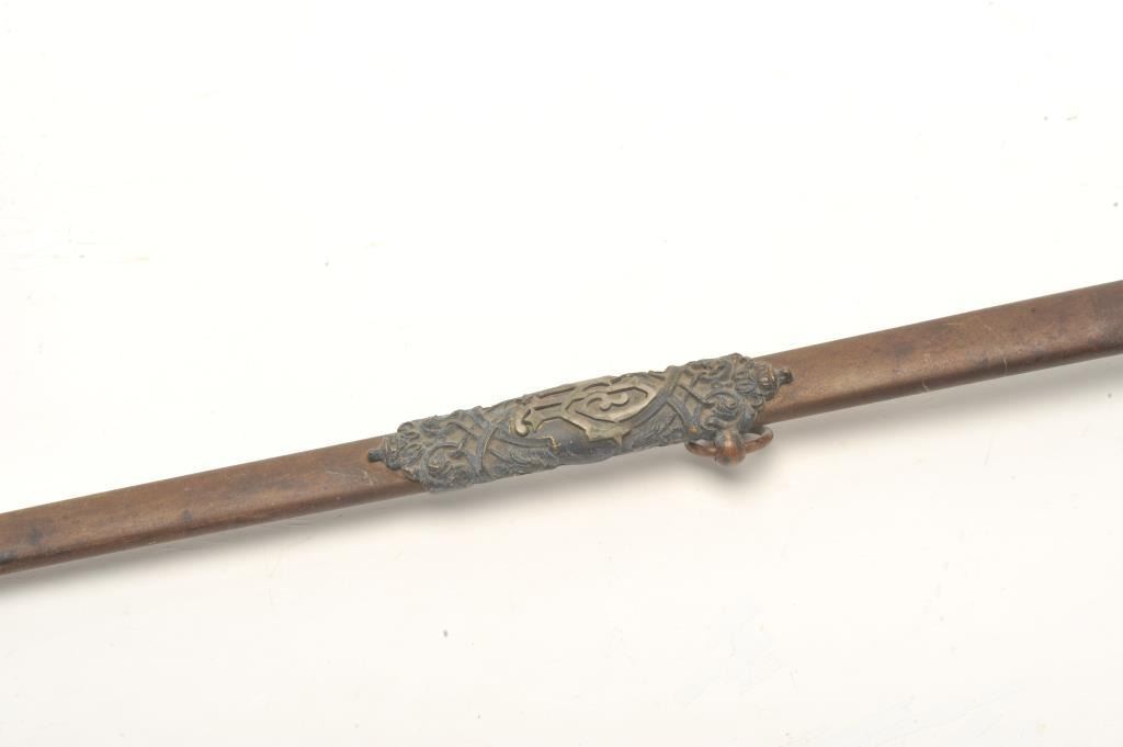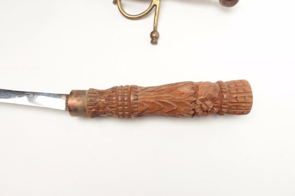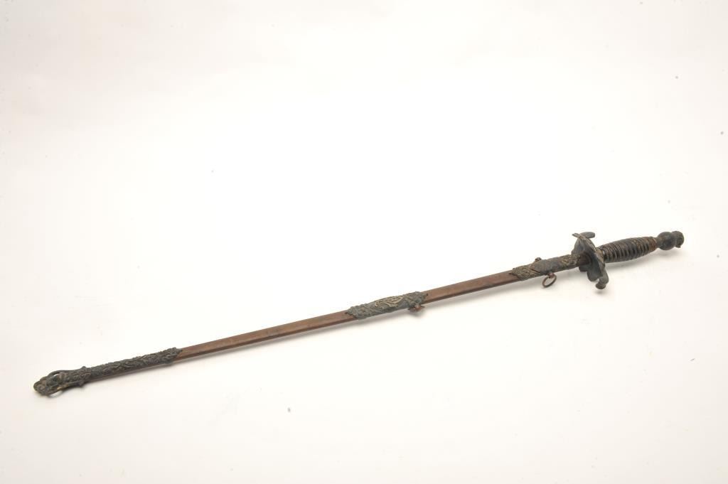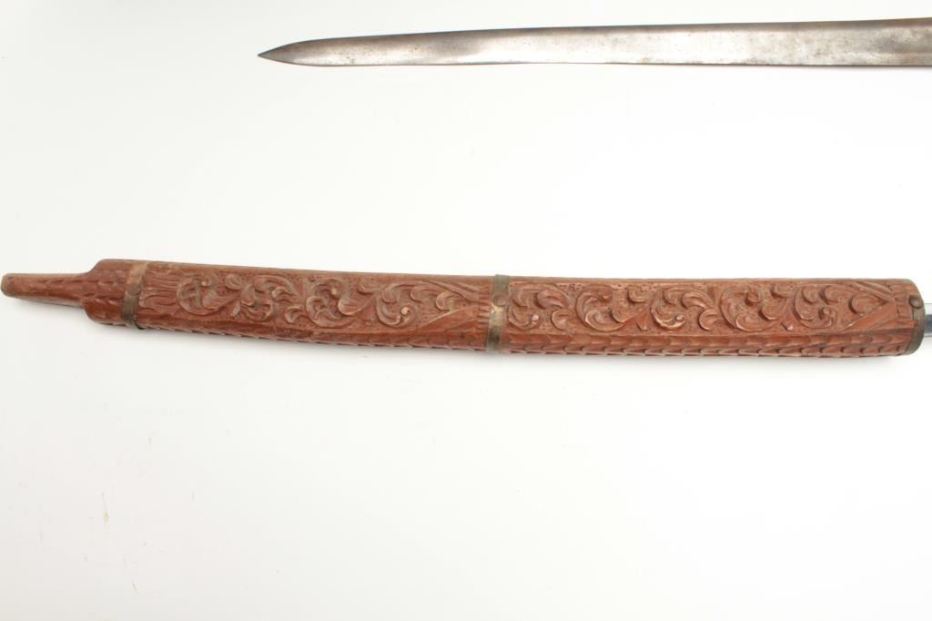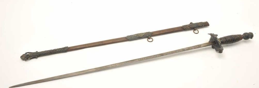 Lot 1783 Lot of three swords including: a lodge sword, Asian style sword in carved wood scabbard and a kni