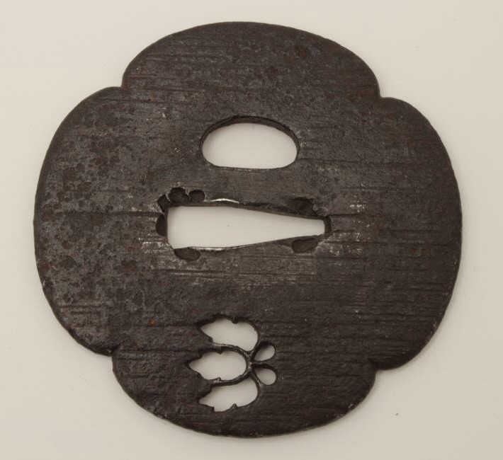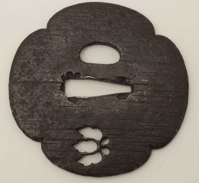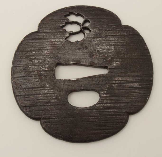 Lot 1797 Large iron tsuba well pierced with imperial mon and chiseled surface. 200-400 years old. EST:$150-
