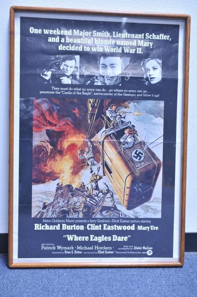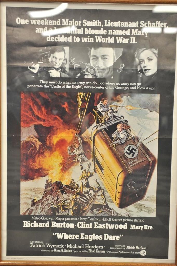 Lot 1802 Framed advertising poster for the movie “Where Eagles Dare”, approximately 40” x 28” with tunic an