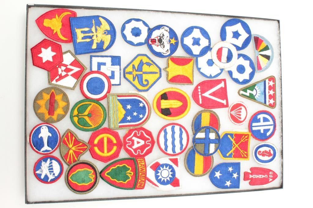 Lot 1816 Large riker case full of U.S. military unit patches. Est.: $50-$75.