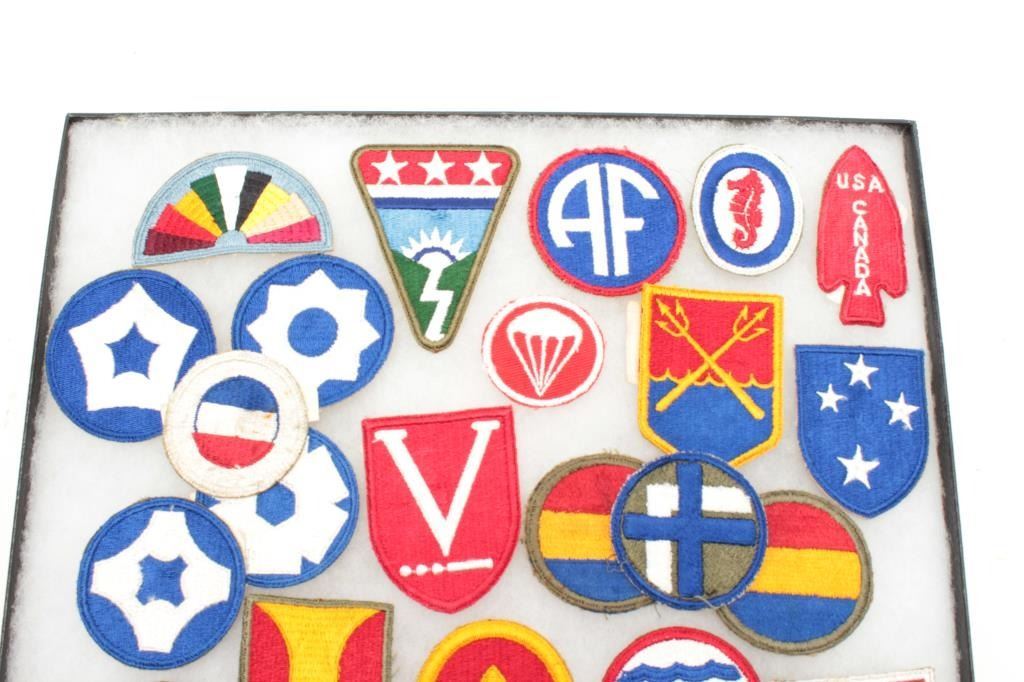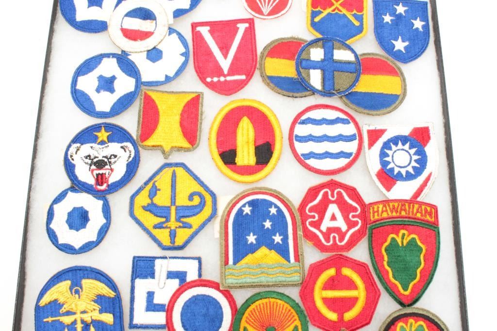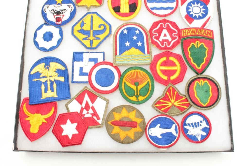 Large riker case full of U.S. military unit patches. Est.: $50-$75.