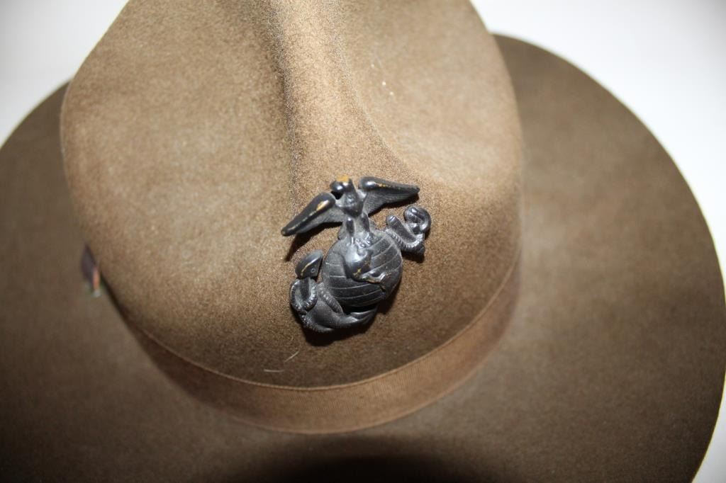 Lot 1818 Marine Corps. “Smokey Bear hat with emblem and tunic with “A” star patch on left sleeve. Est.