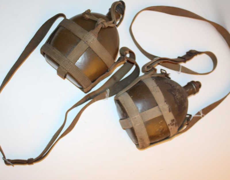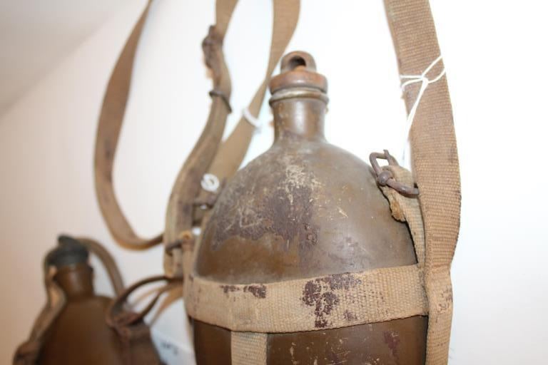 Lot 1821 Lot of 2 WW II canteens with woven shoulder straps. Est.: $75-$150.