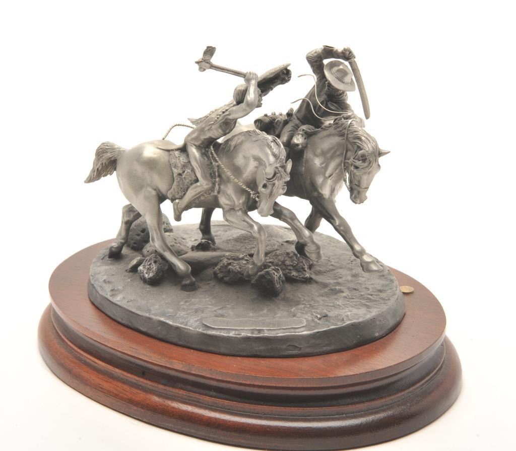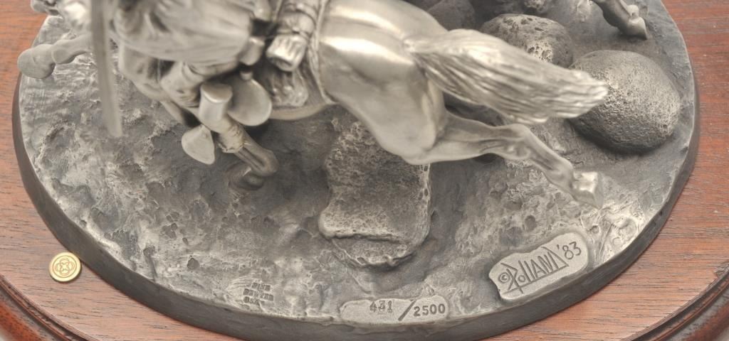 Pewter sculpture by Donald Polland and issued by Chilmark Collectors Society entitled “Eye to Eye”, #431/2500, approximately 5.5” in height including wood base with Certificate of Registration, signed and dated Jan. 5,1988. Est.: $150-$300.