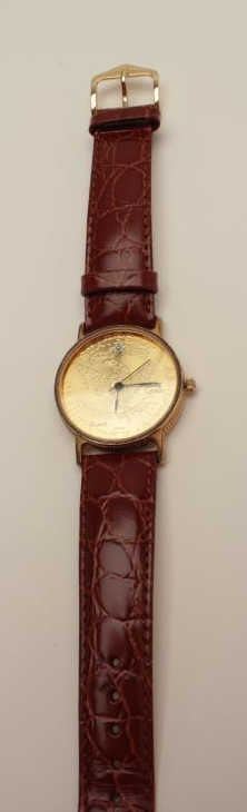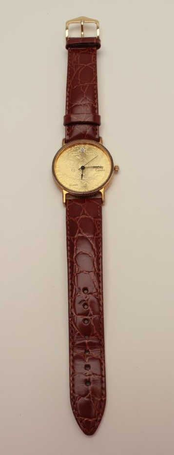 Lot 1830 Oleg Cassini coin wristwatch, copy of Corum, non-gold, quartz movement, Japan-marked; fine conditi