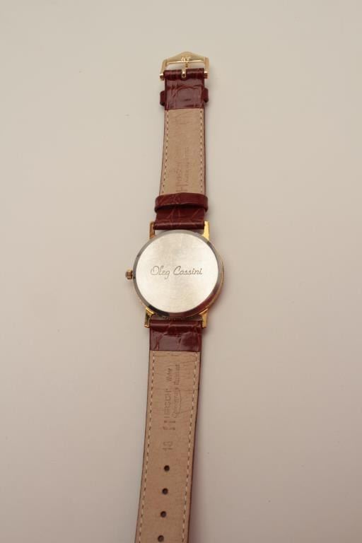 Oleg Cassini coin wristwatch, copy of Corum, non-gold, quartz movement, Japan-marked; fine condition and running at time of description. Est.: $100-$200.